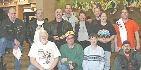 Our first EDB Motorcycle Ride in 2002 to Deaf Fiesta on March 30thOur first group motorcycle ride was from Mt. Rainier, MD where Alvin and Yvonne live and it took us about 5 miles ride to Washington DC Convention Center. We met around 9:30am first at the Mt. Rainier house and left about 11:15am. The ride was easy because no one in the group had any major difficulty in riding. We stayed together and separated whenever the traffic red lights came on and we had to stop frequently via New York Ave in DC. We parked in good spot by the church on the 8th Street and luckily, the parking was free. We met a few deaf bikers at the tradeshow and some joined in this group for this photo.